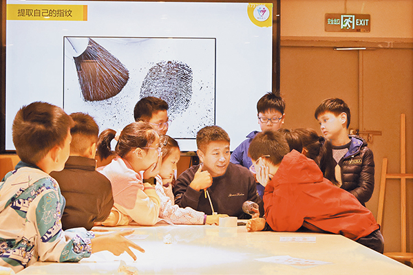 在义乌商报小记者团社会实践基地——遇见星期八书咖,一场“福尔摩斯探案破案体验活动”让孩子们过足了“侦探瘾”。在剧情引导下,他们认真学习在玻璃杯上提取指纹的技巧,还在书架间细致搜寻线索碎片,分组讨论推理案情。“原来侦探要懂这么多知识,比看动画片还过瘾!”小学五年级的孙子依举着从玻璃杯上提取到的指纹卡片,兴奋地分享收获。这种角色扮演式的活动,将孩子们天然的好奇心转化为探究的动力,在欢声笑语中悄然培养了观察力、逻辑推理能力和团队协作能力。