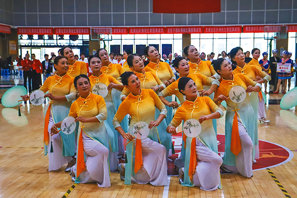 比赛现场,气氛热烈而温馨。伴随着悠扬舒缓的乐曲,老人们身着统一服装,精神矍铄、步伐整齐。健身球表演《中国范》《在希望的田野上》,大家动作舒展柔和、刚柔并济,一招一式尽显沉稳与灵动;秧歌扇《最美中国》、广场舞《采茶舞》、功夫扇《中国功夫》等轮番上演,老人们舞姿轻快、笑容灿烂,用饱满的热情展现新时代老年人热爱生活、积极向上的精神风貌。刚走下舞台的叶丰君阿姨擦着额头上的汗珠,笑容格外灿烂?!敖∩砬虮硌菁榷土镀胶庑裕侄土度崛托??!彼担庋脑硕岣死夏耆苏故咀晕业钠教?,更让他们感受到了实实在在的关怀与温暖。