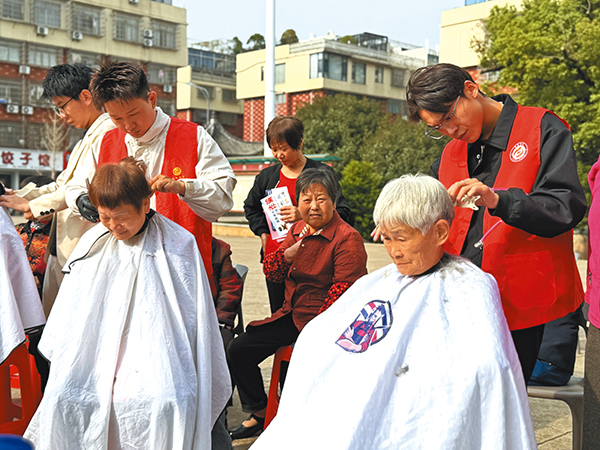 社区里的重阳关怀同样细致入微。在福田街道联港社区陶界岭文化礼堂广场,“睦邻友好 悦享重阳”活动吸引了大批老人。免费理发、爱心义诊、口腔检查、老花镜配发等便民服务前排起了长队,在趣味互动区的垃圾分类大转盘和反诈视力盘旁,老人们边玩边学,笑声不断。69岁的李春香早早到场,她说:“社区银发乐生活群一通知有活动,我一定会参加,特别开心!”联港社区党委书记金振华介绍,社区60岁以上老人有560多位,依托“悦生活 享健康”品牌,每月开展服务活动。“我们以党建为纽带,让社区成为有温度的大家庭。”金振华说,“例如对接企业资源,为老人们发放油米等慰问品。”柒号玩具公司负责人林小娜带领团队送来30多份礼品,她说:“企业在义乌已经16年了,2016年开始做公益,重阳节更要关注老人。”活动尾声,金振华深情总结:“这既是服务群众‘最后一米’的延伸,更是党建与养老的融合。”