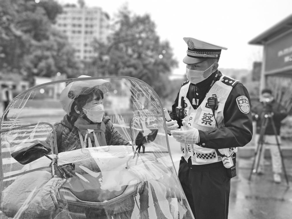 “你好!请注意戴好安全头盔,平安出行。”在雪峰路与望道路交叉口,交警组织开展电动自行车驾驶人答题活动,赠送头盔、雨伞等贴心礼品,同时讲解安全出行知识。随后,交警兵分多路,前往学校、社区、企业等公共场所,将交通安全知识送到群众身边。