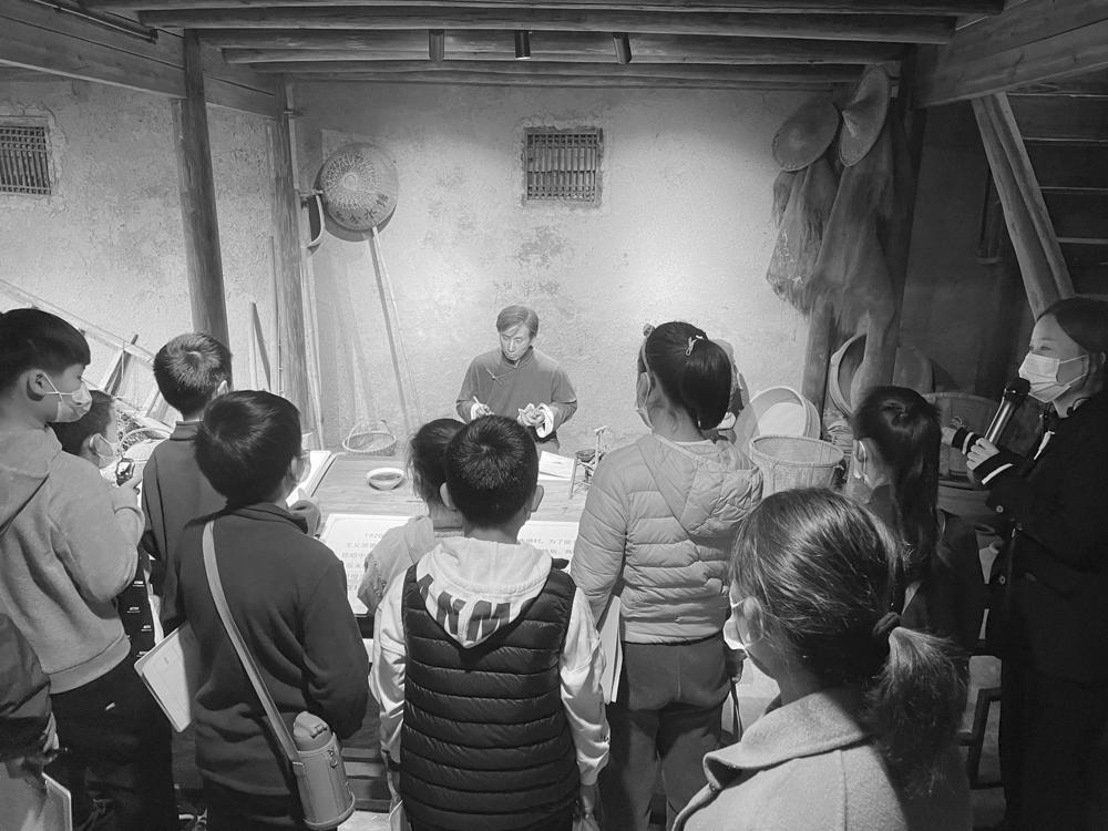 在柴房内,孩子们看着陈望道先生翻译《共产党宣言》的蜡像,体会“真理的味道非常甜”的故事;从一段段历史文字、一件件珍藏文物中,孩子们感悟到了革命者的奋斗精神,并从中汲取养分。“陈望道先生潜心译书,吃粽子时把墨汁当成红糖蘸着吃,非但浑然不觉,反而说‘味道很甜’,这种孜孜不倦、废寝忘食的精神让人感动。”一名学生表示。现场,辅导员还给孩子们上了一堂内容丰富的爱国教育课,并引导孩子们写下自己的收获与感想,让红色精神滋润孩子们的心灵。