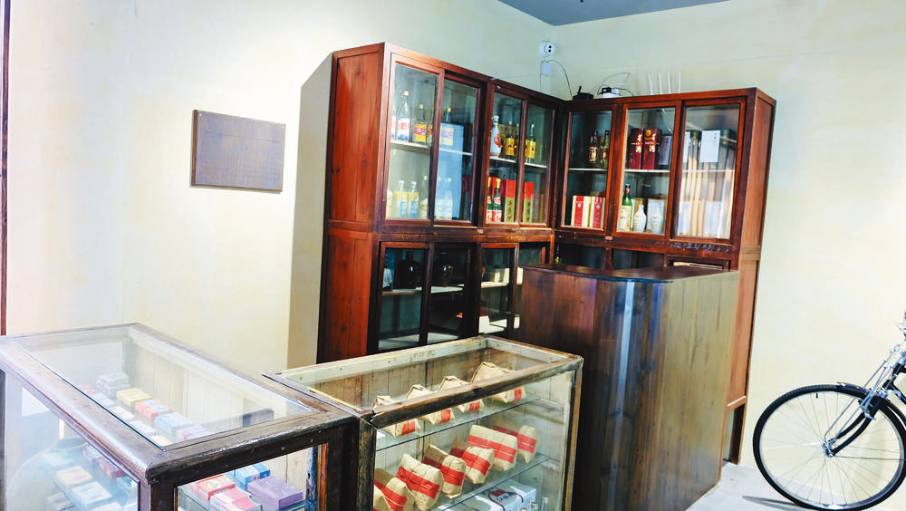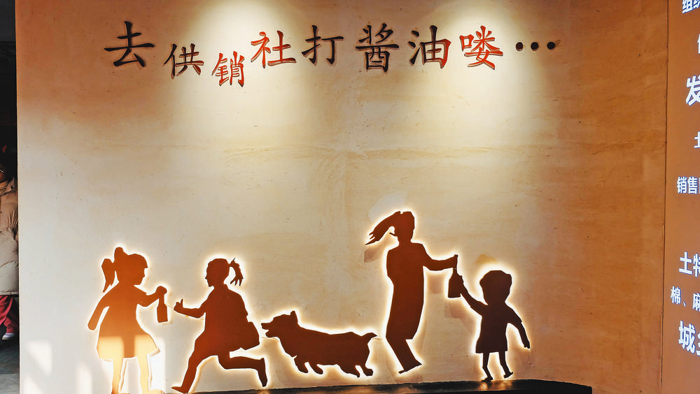 “去供销社打酱油喽”,在老物件区块的一面墙上,一群孩子奔跑的剪影与这行文字相照应,灵动呈现年代特色。本馆最大的亮点区域,是被还原的八十年代供销社内的老柜台场景。大红牡丹花纹的脸盆、军绿色的胶鞋、贝壳状的蛤蜊油、老式的热水壶、不锈钢饭盒……无论是生活中的油盐酱醋茶,还是孩子喜爱的糖果、文具、新衣,这里就像魔术师的百宝箱,应有尽有,让人身临其境地感受到当时供销商店的场景。