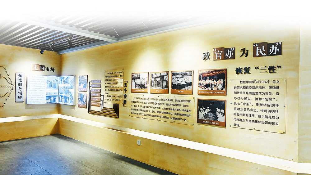 2020年,义乌市供销联社在佛堂老街创建了供销印象馆,重现了当年供销社的辉煌盛况。作为佛堂老街上独特而直观的历史文化展馆,去年,在市博物馆指导下,义乌供销印象馆规范了展品说明,丰富了展陈形式,被成功列入浙江省乡村博物馆名录。久远的供销文化重回大众视野,带着时代印记涅槃重生的供销平台重新焕发出生机。
