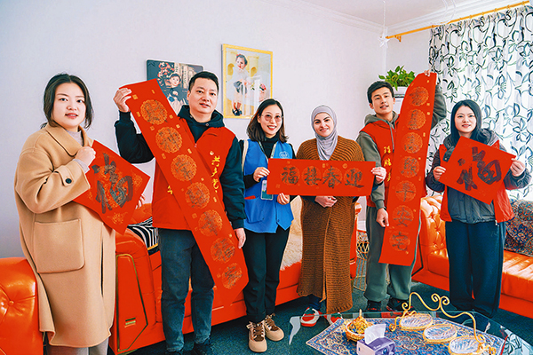 社工和党员志愿者将承载着祝福的手写春联与福字及定制台历,送到外籍志愿者手中,并引导其用汉语或母语录制新年祝福,共有20余名外籍志愿者收到了祝福。(陈洋波)