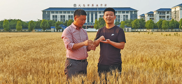小麦丰收,骆遥(右)与同事分享喜悦。
