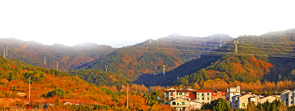 隆冬时节的青岩山,色彩斑斓、层林尽染。漫步山间,仿佛进入了一个彩色的神秘世界,红的似火,黄的似金,常青的苍松如绿宝石般镶嵌其中,与蓝天白云相映成趣。山谷中,车水马龙的甬金高速公路绕村而过;连绵的山峦,宛如两条巨龙蜿蜒向山谷两侧西去。