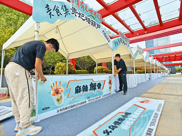 昨日下午,义乌国际博览中心广场,工作人员正在为义乌市第33届群众文化展演暨“打开义乌 遇见世界”义乌好好逛无限嘉年华美食市集精心布展。(吕斌)