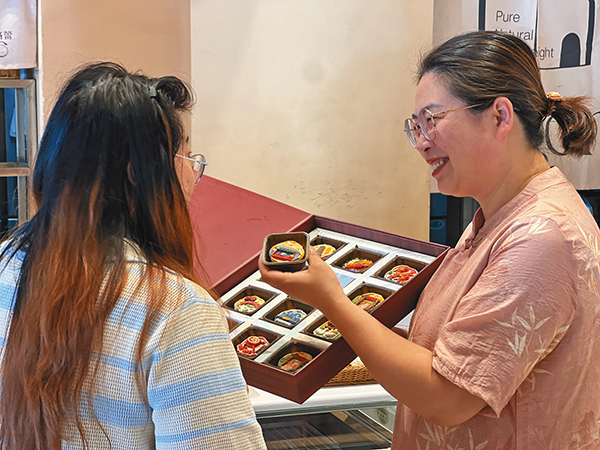 这份独特的“义乌心意”迅速得到了回应。从广东来义乌经商的许女士特意赶来订货,要把月饼寄回老家给父母:“太有义乌特色了,让家人也尝尝我奋斗的这座城市是什么‘味道’。”“看到大家拿到月饼时惊喜的表情,尤其是新老义乌人那份认同感,我觉得一切都值了。”傅亚琴透露,首批几十套月饼售出后反馈很好,认为这套月饼“义乌味”十足。但由于模具压制工艺复杂,图案精细,傅亚琴团队一天只能手工制作约20套。目前,这套饱含匠心和家乡情的月饼设计已提交专利申请。