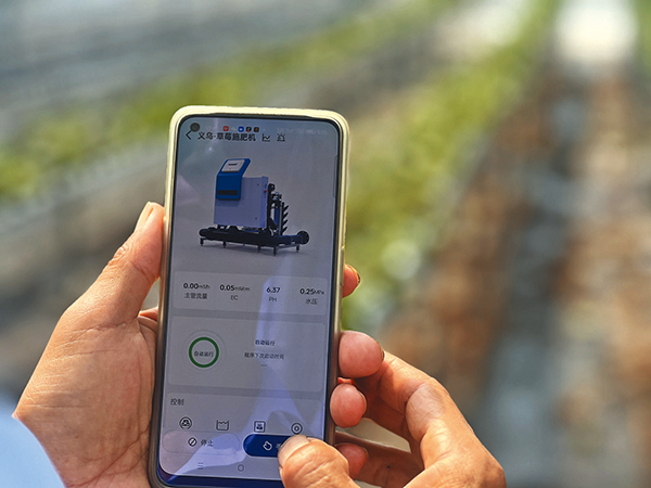 该科技小院的背后是现代科技编织的精密网络:农业物联网如无形脉络,虫情测报仪如敏锐耳目,水肥一体化系统则代替了传统农人的经验之手。史力凡掏出手机,实时数据尽在指尖流动:师傅们无论身在何处,手机一点就能精准调控水肥——这就是质量和产量的硬保障。