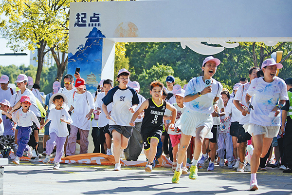 随后,“丝路缤纷跑”在众人倒计时中活力开跑。伴随彩色礼炮绽放,300多名跑者从起点出发。在奔跑的过程中,参与者们还能沉浸式体验丝路文化,手持特制“通关文牒”,沿湿地公园主线穿梭于六大文化打卡点,在NPC引导下趣味收集印章。尤其是在万国美食市集上,土耳其烤肉的焦香、章鱼小丸子的鲜香与东河肉饼的酥香在空中交织弥漫,让人不由地停下了脚步。主办方贴心发放的1500张“霸王券”和2.7万张消费券,有效点燃了市民的消费热情。