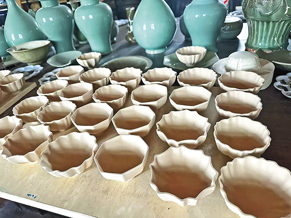 走进陈云龙的柴烧青瓷研究室,记者看到,数张桌面上摆满了他和合作人的青瓷作品。在承袭古窑烧制的基础上,陈云龙精心研制了体型小、烧制快的新型“轨道窑”?!拔颐且诖芯璧幕∩?,创新设计出符合现代人审美与实用需求的产品,让传统技艺重新焕发生机?!彼?。