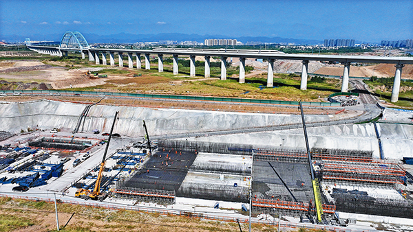 10月11日,甬金高速改扩建工程双江湖路段土建工程隧道区段,众多施工设备和建设人员立体作业同步进行,首件主体底板施工完成,标志着工程进入主体施工新阶段。