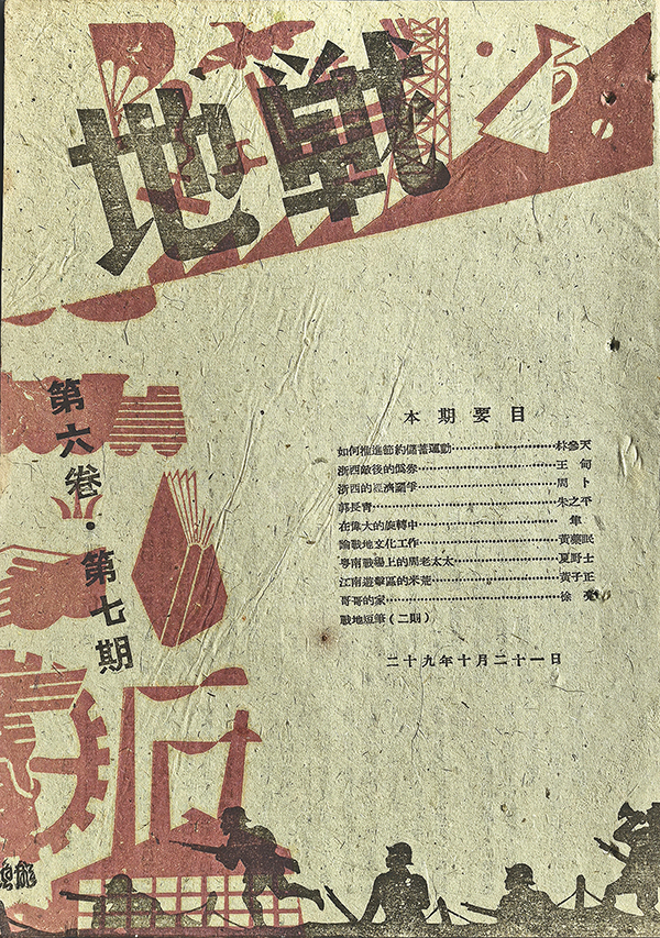 在一本第六卷第九期的《战地》封底,几行竖排字标注:“出版者:战地社,发行者:战地服务团,金华酒坊巷十一号”。另一本第六卷第七期内页印有“东南日报第二印刷厂承印”字样。据刘关良考证,这些刊物正是《东南日报》迁至金华期间出版的。