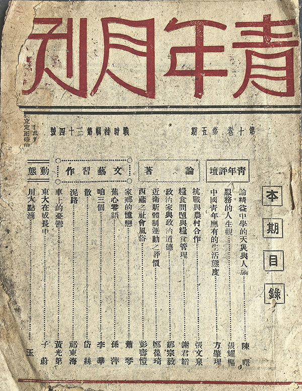 与此同时,刘关良还珍藏了多本抗战时期的外省刊物,如《青年月刊》《中学生战时半月刊》《江西青年》《文艺青年》等,不同刊物都表现出一代青年的精神抉择。