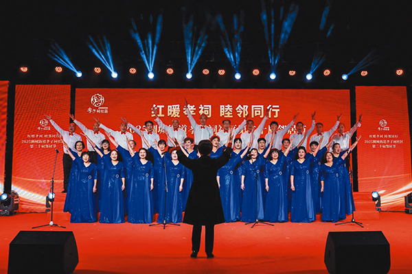 节目表演环节,由社区居民参与的走秀、古筝合奏、三句半等节目连番上演。其中,由居民自导自演的三句半《义乌“六义”夸不完》,用通俗易懂又诙谐幽默的语言,把在社区邻里间的义乌“六义”故事一一展现,逗得大家笑声不断,也让“六义”精神更深入人心。
