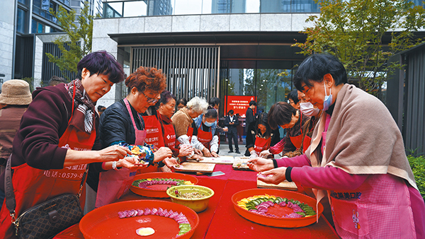 10月24日上午,社区精心筹备的“幸福饺子宴”更将邻里温情推向高潮?;疃殖?,回迁居民、新住户们自发分工,揉面、擀皮、调馅、包饺子?!昂镁妹徽饷慈饶至耍 备栈厍ú痪玫木用癯峦啪晷ψ潘担骸拔液土诰右黄鸢茸?,聊起回迁后的生活,感觉一下子就熟络了?!薄敖茸友纭蔽采?,党员志愿者们带着“孝义温度”出发,将刚出锅的热饺子分装进保温盒,送到物业、保洁人员和外来建设者手中,还上门走访社区残疾居民家庭。