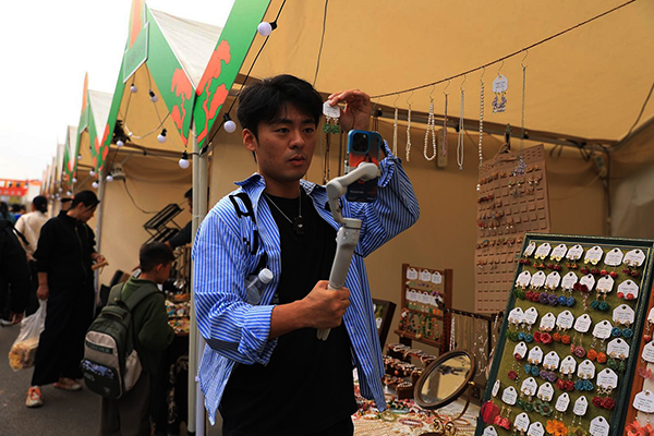 此外,记者注意到印度飞饼摊位前始终人头攒动。摊主Raja来自印度,已在中国生活五年,此前主要在杭州经营餐饮。经朋友推荐,他首次来到义亭参加民俗市集。“生意特别好。”他用流利的中文笑着说,“这里的消费热情和国际化的氛围让我印象深刻。”