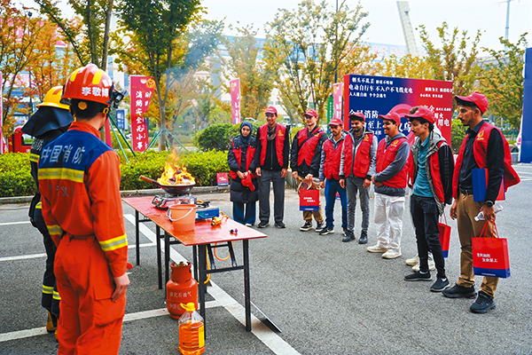 “蓝朋友”快板服务队则用普通话、英语、义乌方言等多种语言,将“人走电断”“燃气关阀”等安全常识编成朗朗上口的快板词,在欢快的节奏中传递了重要的消防安全知识,赢得阵阵掌声。此外,“洋更夫”国际消防志愿者服务队开展的多语种宣传,充分展现了义乌作为国际商贸名城的开放与包容特色。各个体验区人气火爆,群众在轻松愉快的氛围中既学到了知识,也加深了对消防救援工作的理解与支持。(王怿杰 陈文青)