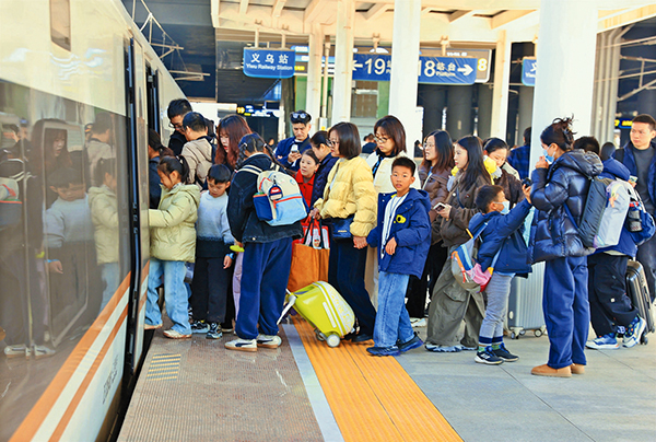 据了解,当天铁路义乌站迎来客流高峰,预计发送旅客3.3万人次,其中儿童旅客大幅增长,预计4800人次,相较普通工作日提升5倍。旅客主要流向北京、上海、杭州、温州等地。