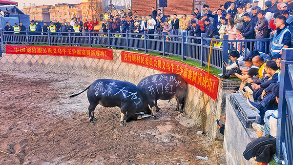 11月22日至23日,上溪镇五七农场里,义乌市第三届“上品”牛汤季重磅预热活动——牛王争霸赛激情开赛,展现斗牛文化魅力。60余头来自福建、贵州、江苏、云南、江西等地的“斗牛猛将”齐聚一堂,争夺“牛王”称号。